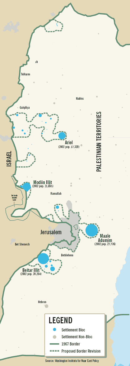 Source: Reprinted with permission of David Makovsky. Map developed by Makovsky and Eran Benedek, Foreign Policy, (September/October 2003) |