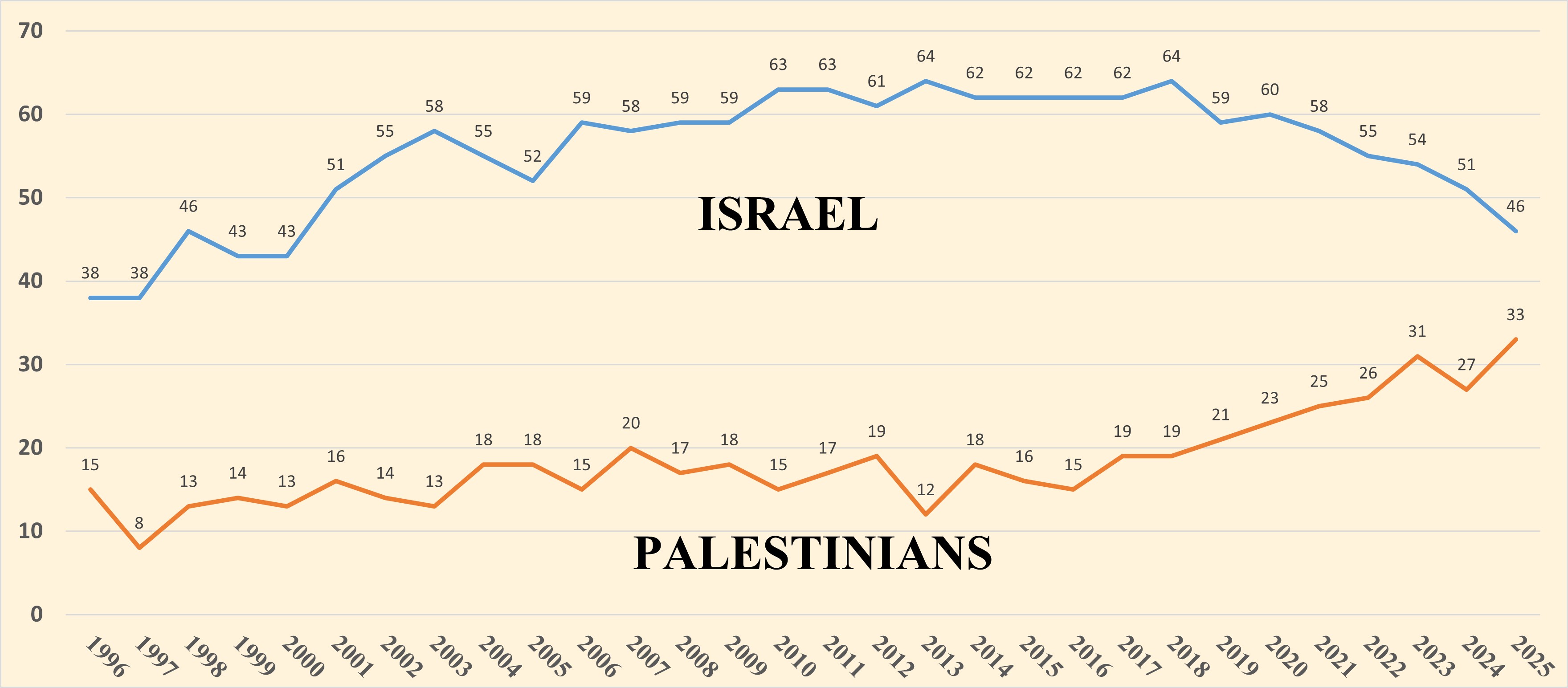 Record High Support for Palestinians: 33% (Feb. 2025) | |||