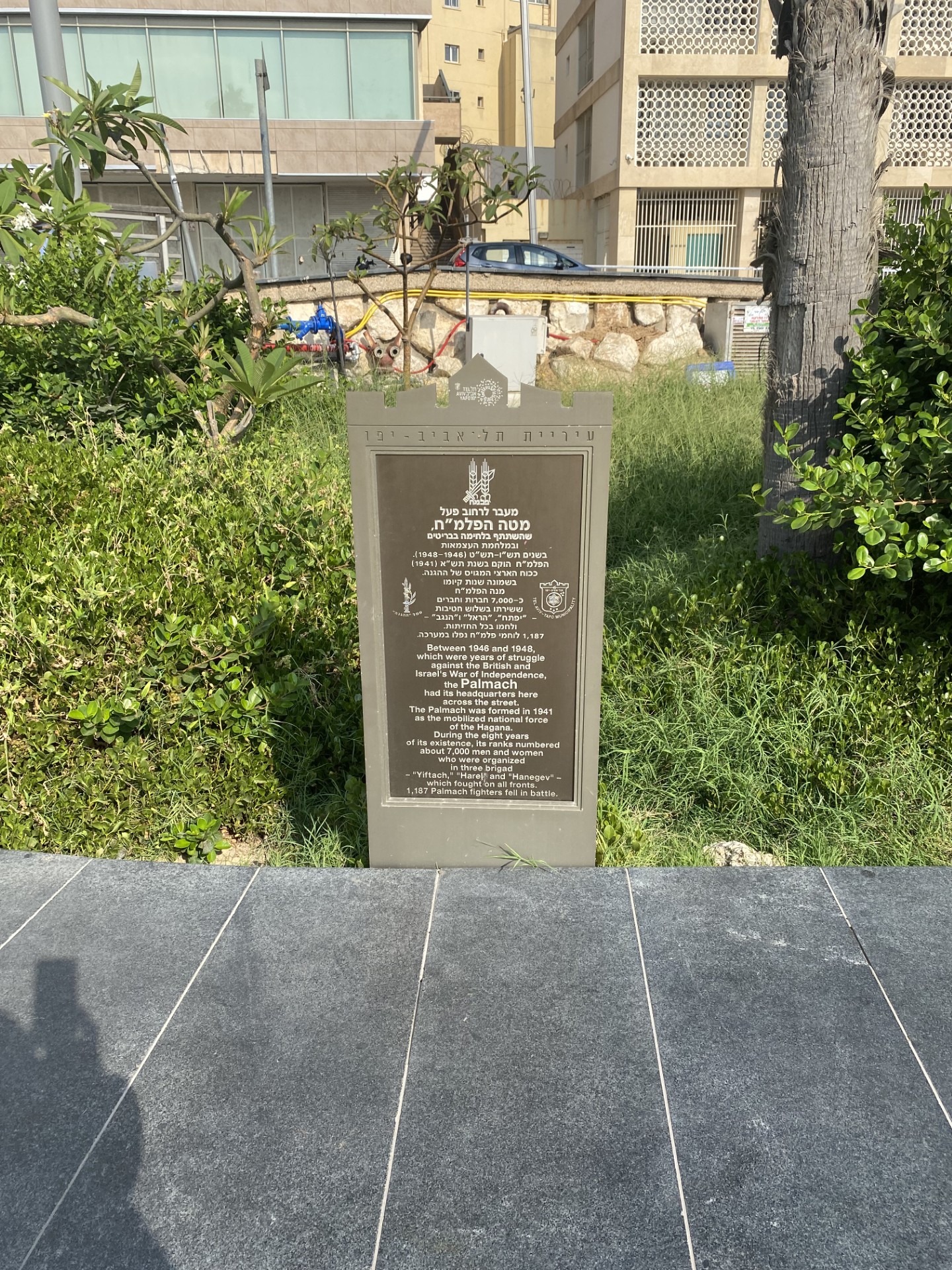 Memorial plaque marking the Palmach headquarters in Tel Aviv